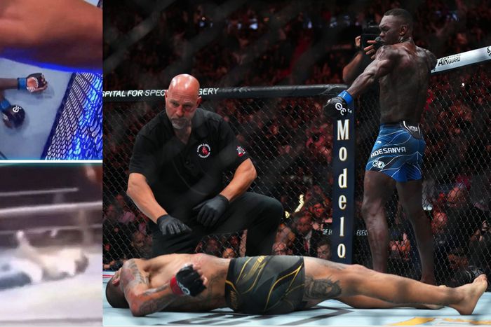 After winning, Adesanya faked being knocked out in front of Pereira's son to get revenge for the boy's earlier imitation of the same action.