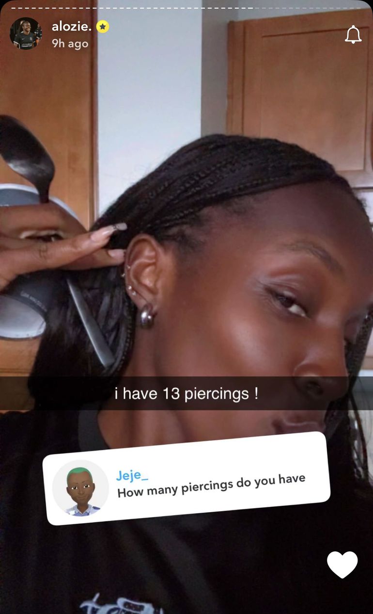 The statement came when a curious fan asked her about her body piercings on Snapchat.