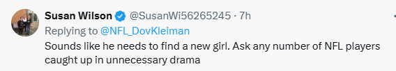 One fan bluntly wrote: “Sounds like he needs to find a new girl. Ask any number of NFL players caught up in unnecessary drama.”