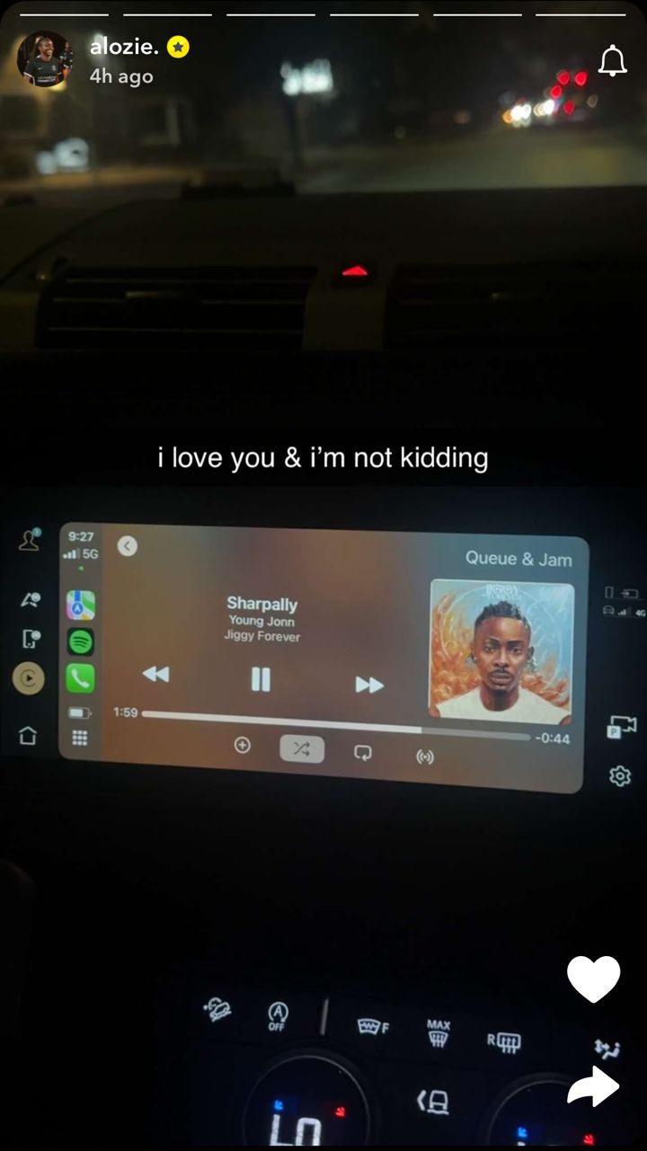 Alongside the photo on her Snapchat, Alozie captioned: “I love you & I’m not kidding.”