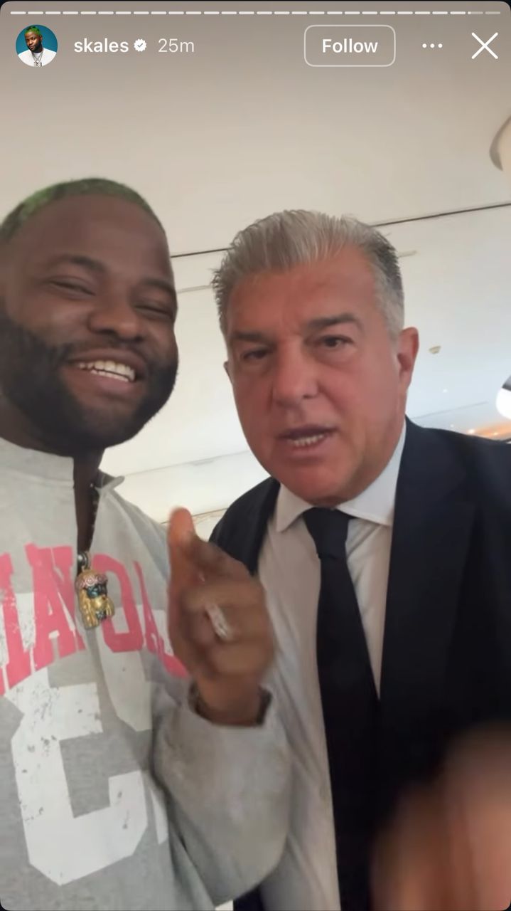 Pulse Sports also reported Skales later met with the Barcelona squad, and even club president Joan Laporta, during celebrations in Seville after defeating Real Madrid in the Copa del Rey final.