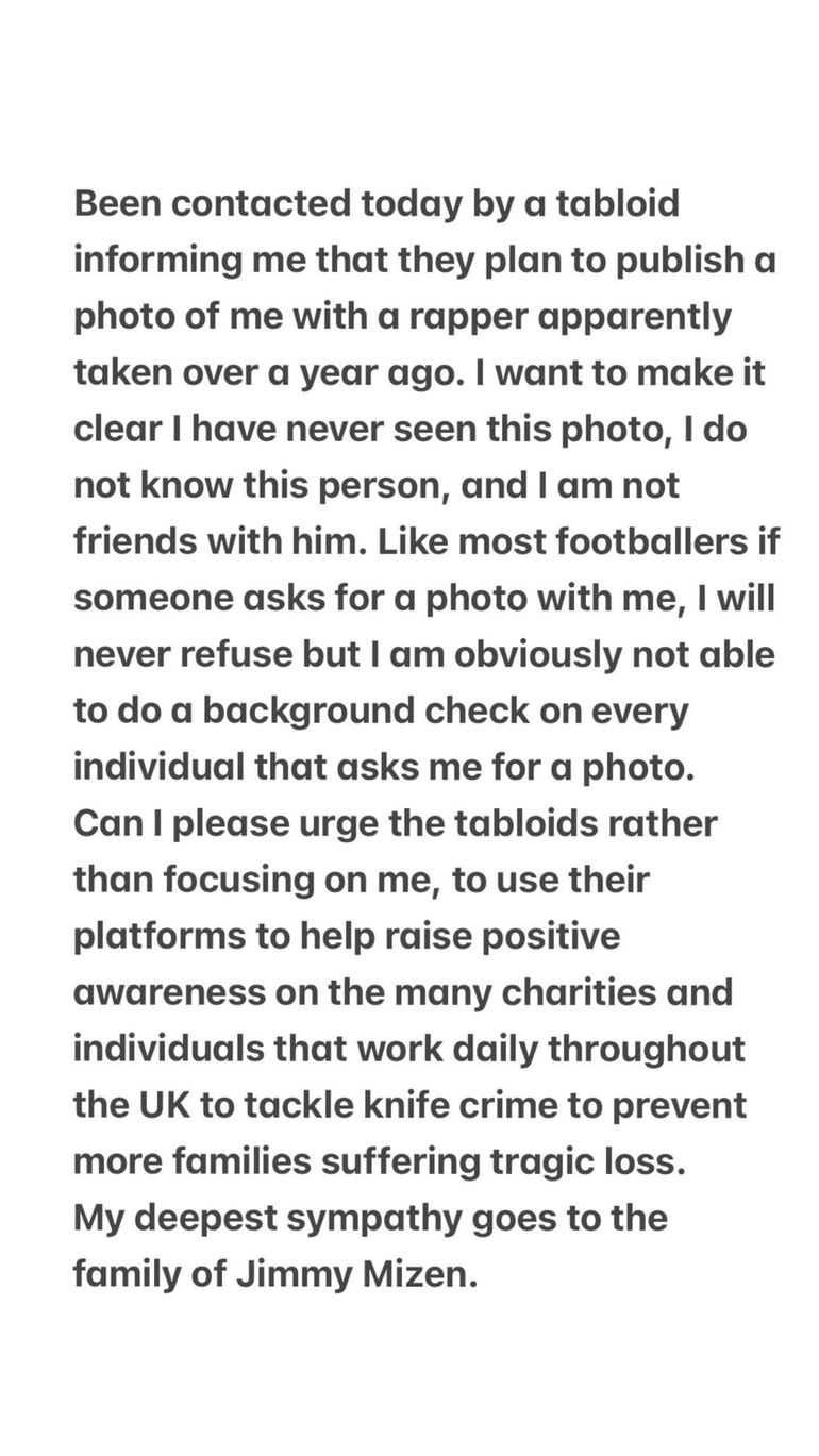 “Like most footballers, if someone asks for a photo with me, I will never refuse but I am obviously not able to do a background check on every individual that asks me for a photo.