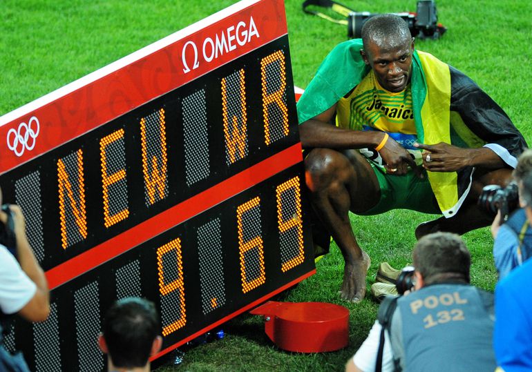 Usain Bolt becoming the fastest man alive with his 9.58 100m world record time in 2009. pic.twitter.com/WwB8bpcVQA