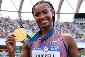 US Olympic champion Masai Russell has lofty goals planned out for her career after winning the Olympic title in Paris, one of which includes breaking Tobi Amusan's World Record.