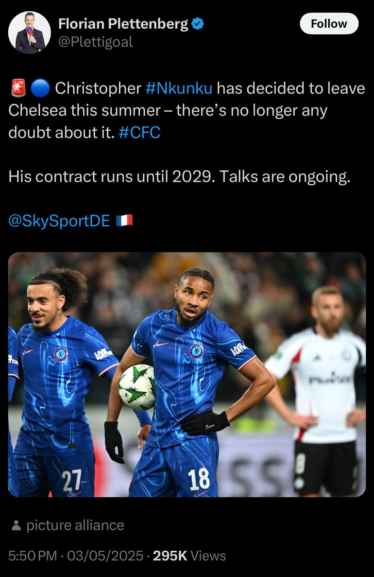 Despite signing a long-term contract until 2029 with the Blues, it appears Nkunku's future lies elsewhere. Reports suggest that talks regarding his departure are already underway.