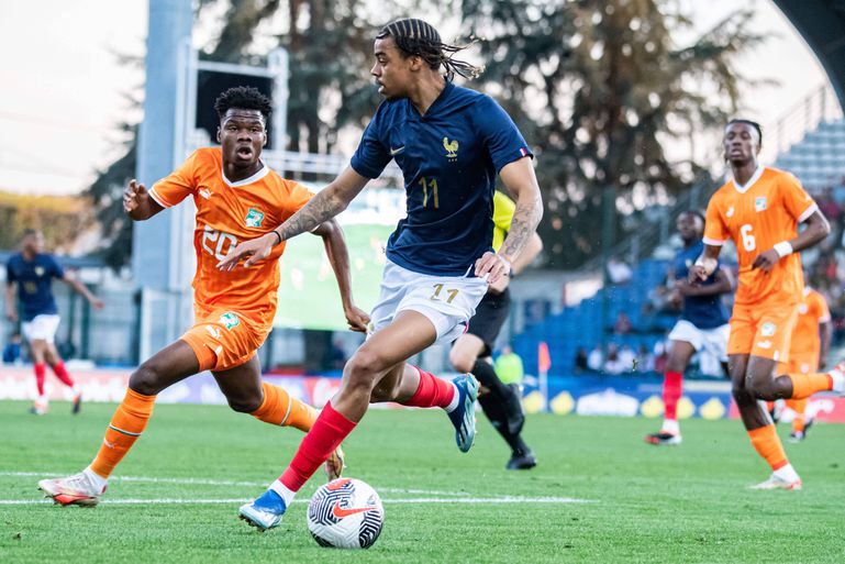 Bradley Barcola in action for France U-23 against Ivory Coast || Image credit: Imago