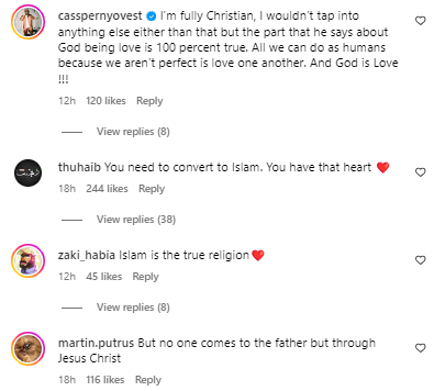 Several Muslims and Christians responded to the comments by Adesanya on his official social media platforms.