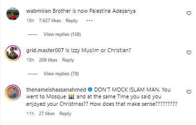 "DON’T MOCK ISLAM MAN. You went to Mosque 🕌 and at the same Time you said you enjoyed your Christmas?? How does that make sense?????????."