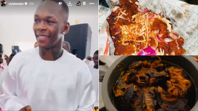 Adesanya also displayed some of the foods he consumed, such as Fan Yoghurt, Suya, and snails.