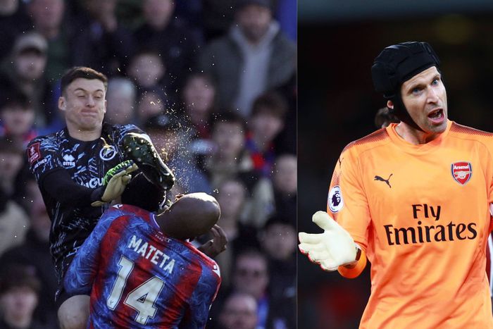Former Chelsea keeper Cech wore a protective head covering after suffering a fractured skull in a collision with Reading’s Stephen Hunt in 2006.