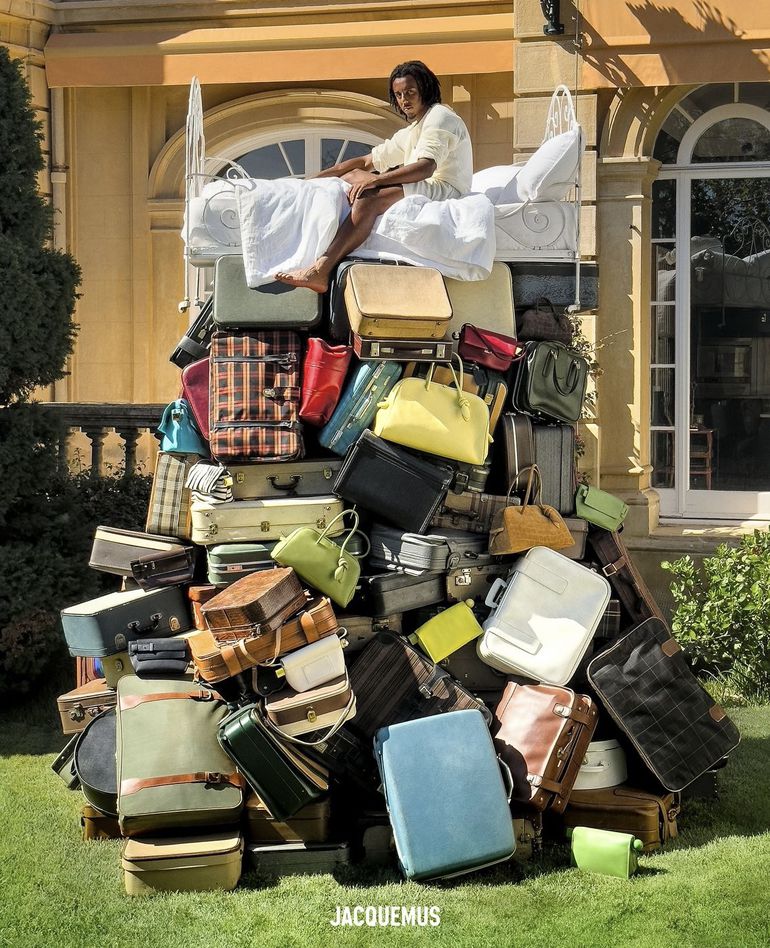 The surrealist elements of Jacquemus’ latest campaign extend beyond the visuals. In one striking scene, Koundé finds himself atop a mountain of suitcases, a metaphor for the multifaceted life of an athlete constantly on the move.