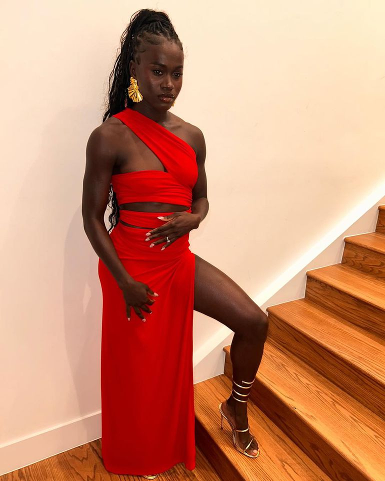 Styled to perfection, the Olympian’s red dress featured a dramatic slit, exuding elegance and confidence.