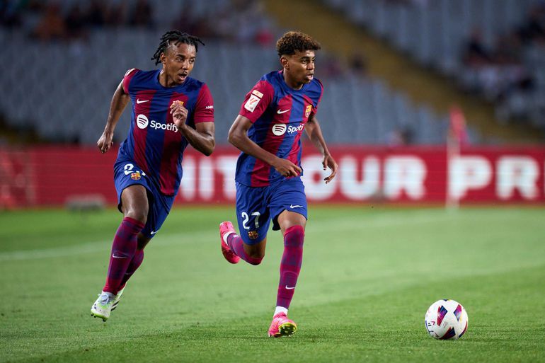 Jules Kounde(L) and Lamine Yamal playing for Barcelona in a LaLiga EA Sports match| Photo Credit: IMAGO