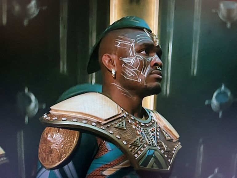 Usman, Adesanya, and Ngannou all posed to do the symbol of the Marvel Cinematic Universe (MCU) movie superhero Black Panther.