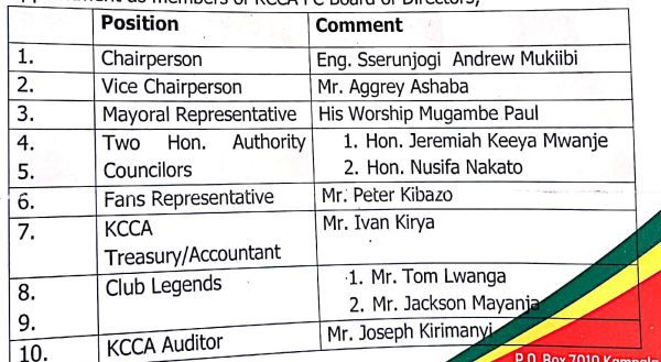 Club legends Jackson Mayanja and Tom Lwanga are some of the members on the board.