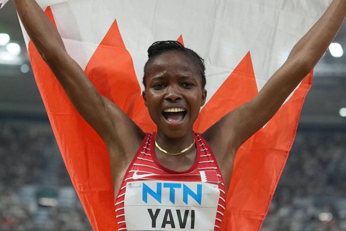 .@WinfredYavi becomes the first athlete from Bahrain to win the 3000m steeplechase at the #WorldAthleticsChamps