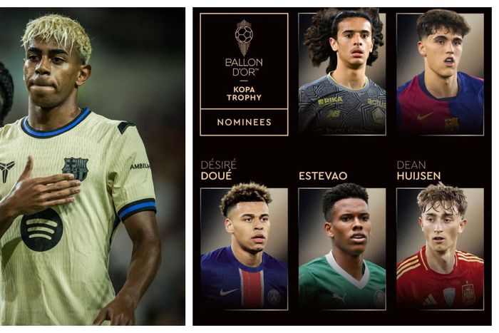 The nominees include Pau Cubarsi (Barcelona), Ayyoub Bouaddi (Lille), Desire Doue (PSG), Estevao (Palmeiras/Chelsea), Dean Huijsen (Bournemouth/Real Madrid), Myles Lewis-Skelly (Arsenal), Rodrigo Mora (Porto), Joao Neves (PSG), and Kenan Yildiz (Juventus). Barcelona’s 18-year-old star Lamine Yamal.
