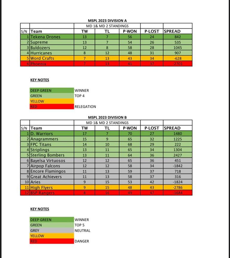 The Lagos state-based team was the most exciting side as it topped the Division B table after the conclusion of Matchdays 1 and 2 at the Ibeto Hotel, where 12 teams engaged one another at the most glamorous scrabble league in the world.