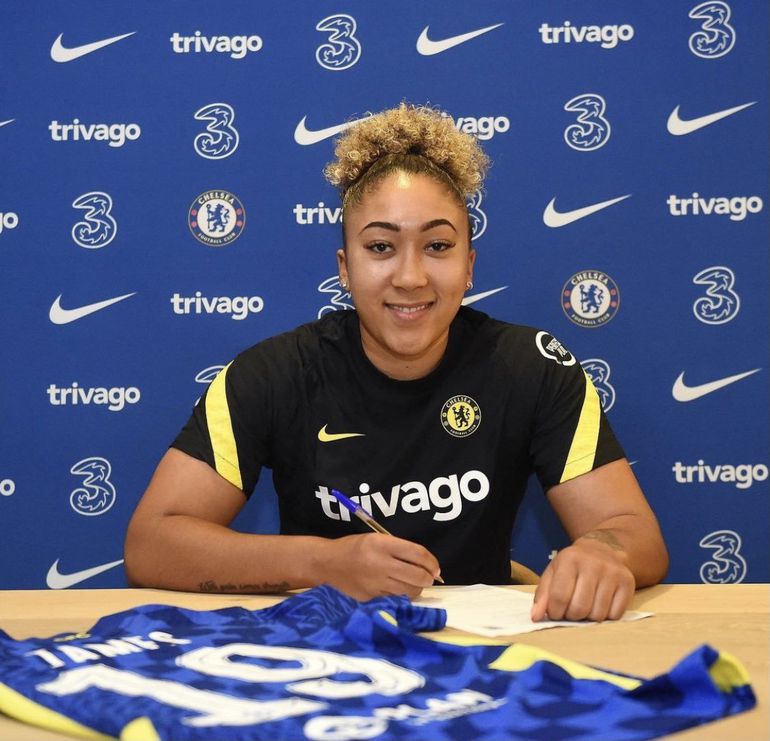 On 23 July 2021, James signed a four-year contract with WSL champions Chelsea in a deal worth up to £200,000 with bonuses as per Sky Sports and was assigned the no. 10 jersey.