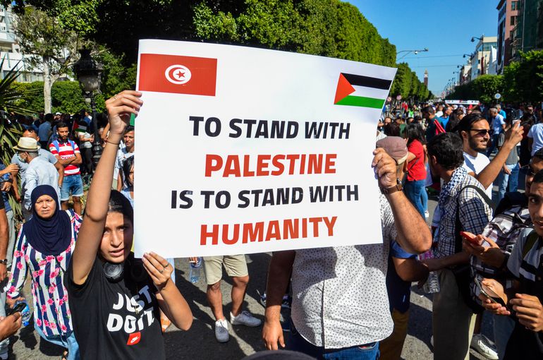 Thousands of Tunisians stage a demonstration in support of Hamas and the Palestinian resistance in the Tunisian capital| Photo Credit: IMAGO