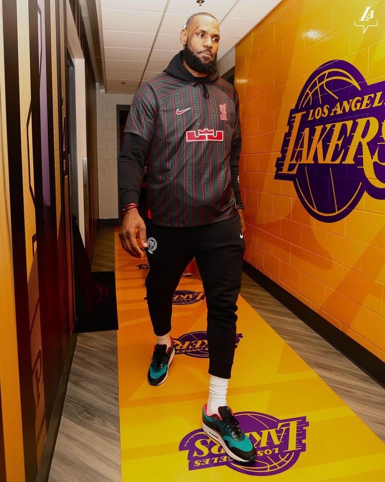 LeBron wore a limited edition pair of Air Max 1s designed with the Liverpool logo.