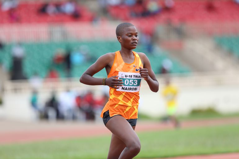 Diana Chepkemoi (C) competes during the AK trials for the Africa U18/20 championships