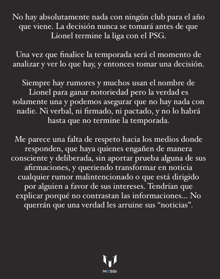 There is absolutely nothing with any club for the year he's coming. The decision will never be made before Lionel finished the league with PSG.