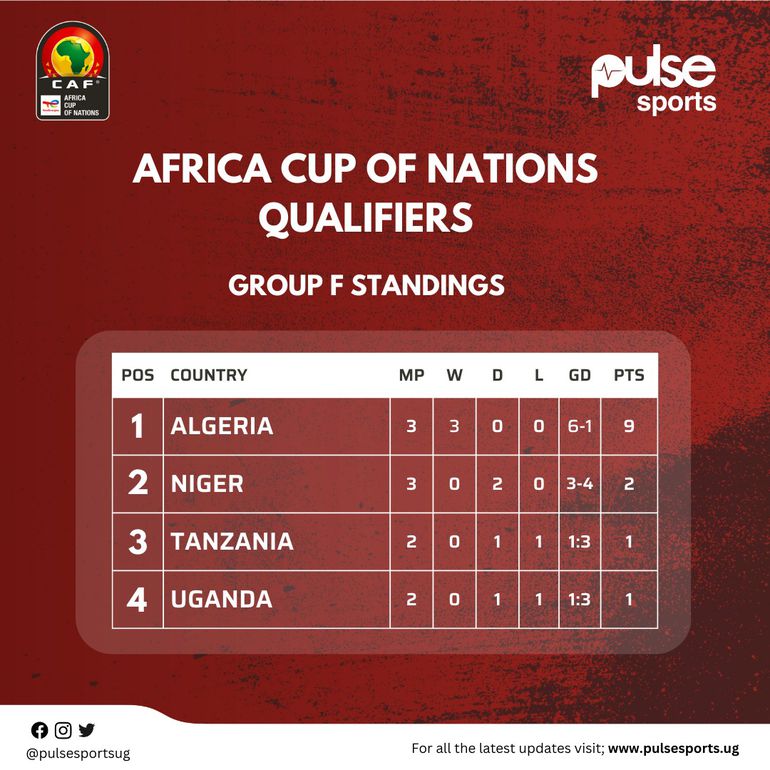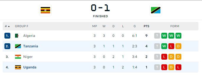 FT' And it is the second loss for Uganda out of three games, as Tanzania pick their first three points to take their tally to four, five behind log leaders Algeria.