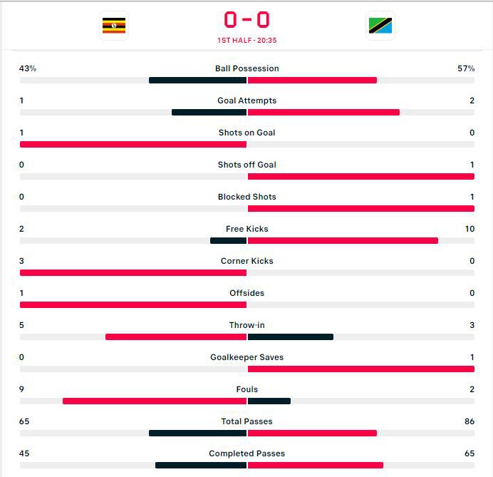 25' Joseph ochaya, Emmanuel Okwi and Fahad Bayo have tried to keep the Tanzanian defense with minimal supply coming through from the midfield