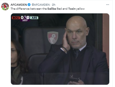 Fans of the Gunners believe that Adarabioyo should have been sent off just as their defender William Saliba was for a similar situation in the loss to Bournemouth.