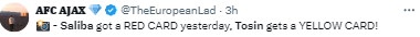 Arsenal fans angry because Tosin Adarabioyo was not sent off like Saliba