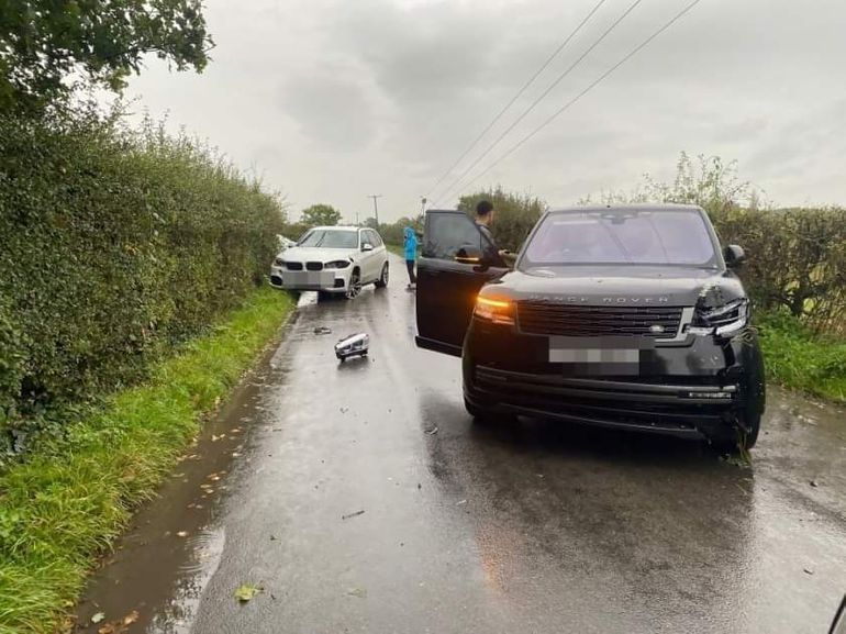 His £90,000 black Range Rover, which also had a broken headlight and pieces missing from its front-left bumper, was severely damaged by the collision.