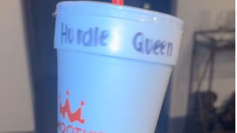 Scribbled on her smoothie cup were the words "Hurdle Queen," a nod to her recent Olympic gold medal achievement.