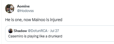 “Manchester United can confirm that Kobbie Mainoo suffered an ankle injury during the match against Real Madrid on Tour 2023,” the statement read.