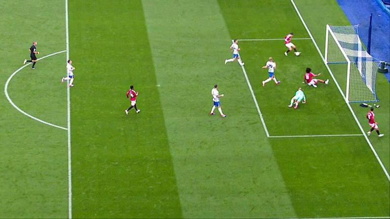Amad threaded a pass through to Fernandes, who found Garnacho in the box to score, but a quick VAR review ruled that the goal was offside.