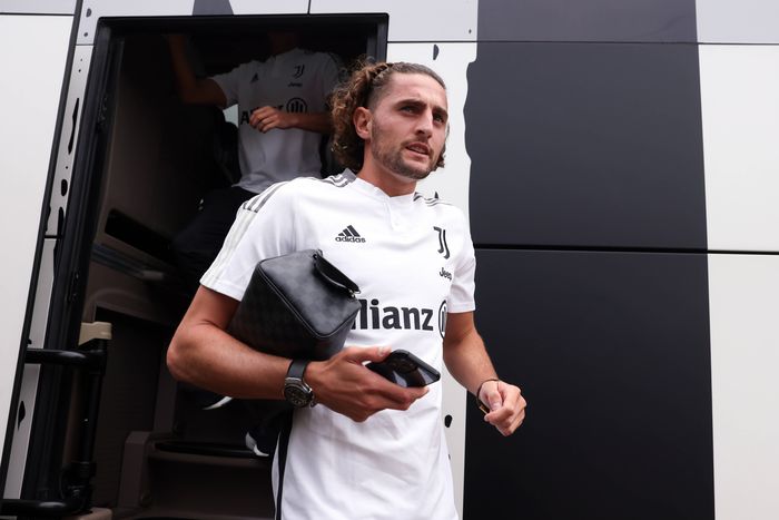 Adrien Rabiot of Juventus leaves the team bus upon arrival at he stadium for the Pre Season Friendly match at Campo Comunale Gaetano Scirea, Perosa Villar Perosa on August 4, 2022.