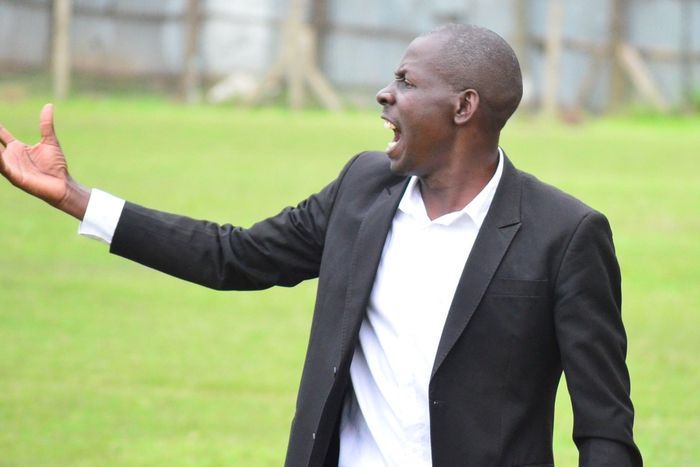 Maroons FC head coach Mohammed Ssenfuma shouts out instructions during a game. (twitter)