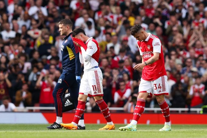 Martinelli had to be replaced by Leandro Trossard.