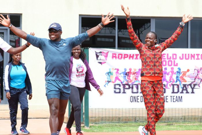 Two celebrated athletes Mary Moraa and Ferdinand Omanyala graced the Rophine Field Junior School Sports Day with their presence at the Ulinzi Sports Complex in Nairobi this Saturday.