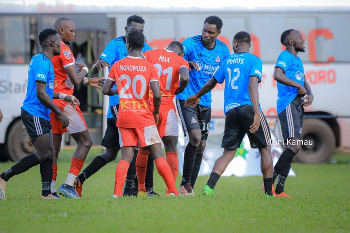 A home team player was later accused by the away team players for bearing “something” in his shorts, with referee Mashood Ssali ordering him off the pitch to take it out.