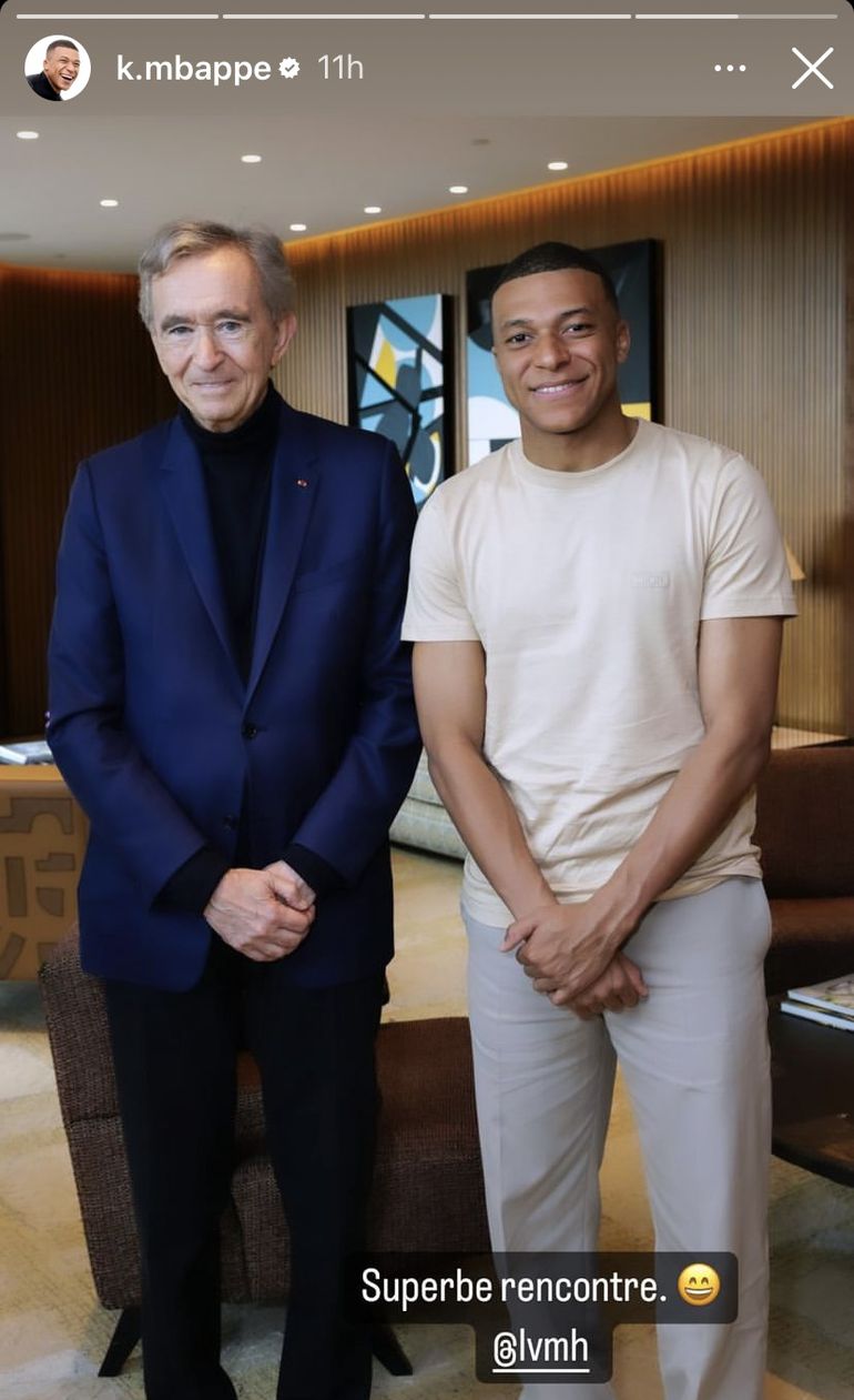 Mbappé, the world’s highest paid u-25 athlete, posed next to the Louis Vuitton’s super rich owner and uploaded a picture on his Instagram stories as he captioned, “Super meeting” and shared with 114 million followers.