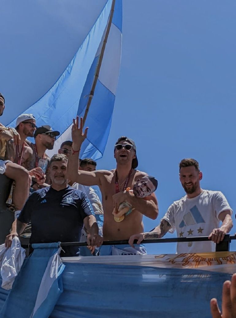 During Argentina's trophy parade, a doll carrying Kylian Mbappe's face was thrown towards Martinez, and he was pictured carrying the dull and laughing.