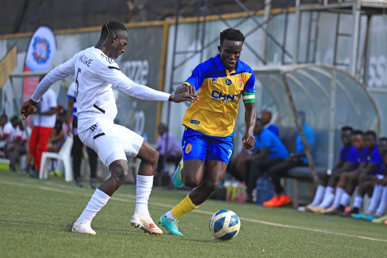 KCCA FC's captain Julius Poloto dribbles past Apollo Kagogwe in a recent match | KCCA FC