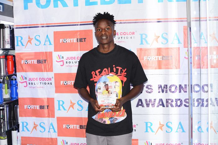 Uganda Hippos forward Rogers Mugisha poses with the Real Stars Player of the month award for February // Courtesy Photo