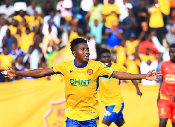 Allan Okello celebrates KCCA’s lone goal against Wakiso Giants at Star Times Lugogo on Saturday / Bata Image