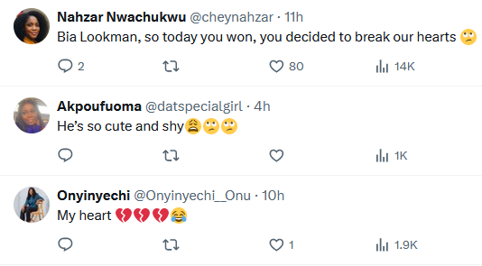 Nigerian ladies flooded the comments section of the viral clip that made the rounds on social media platform X(formerly Twitter), lamenting that their hearts have been broken.