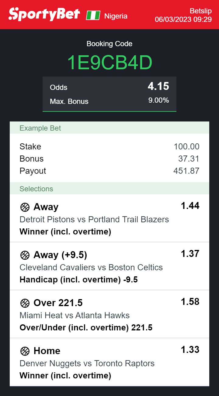 Our tickets include Denver Nuggets, Portland Trail Blazers, Cleveland Cavaliers and Philadelphia 76ers respectively.