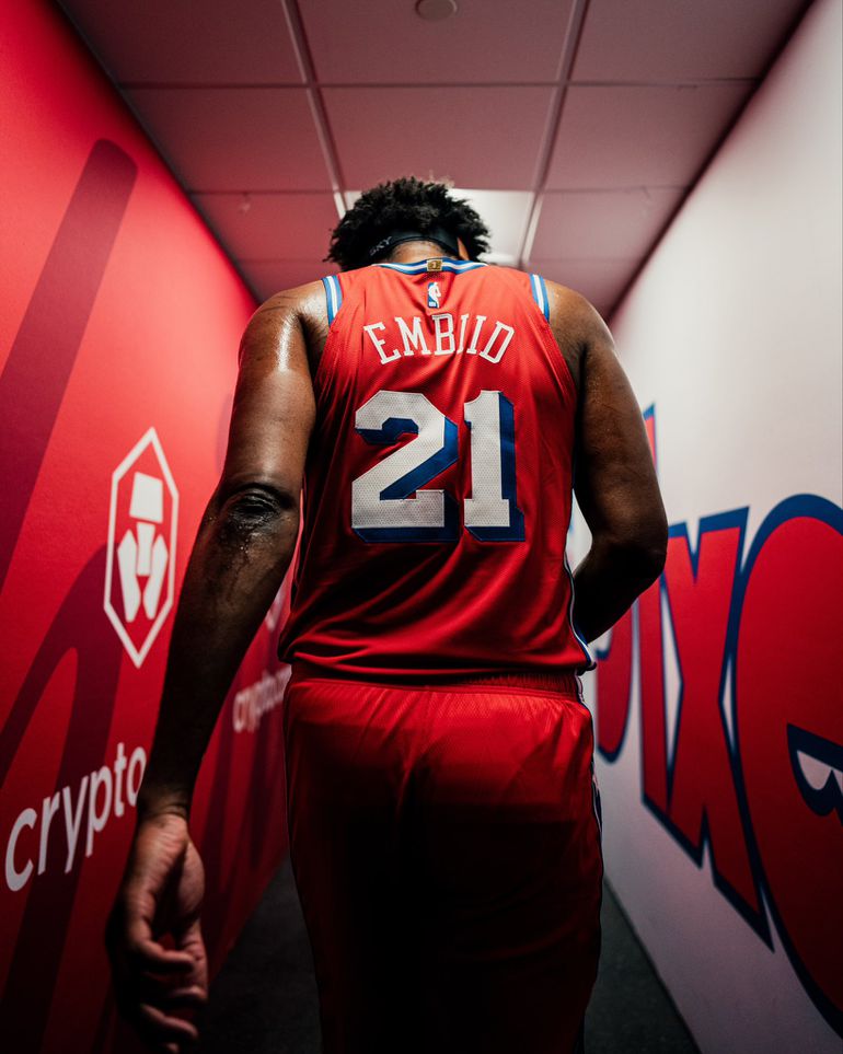 After missing one game due to a nasal fracture, Joel Embiid center for the 76ers, returned to Philadelphia wearing a protective mask to score 34 points in a 108-98 victory over the Charlotte Hornets.