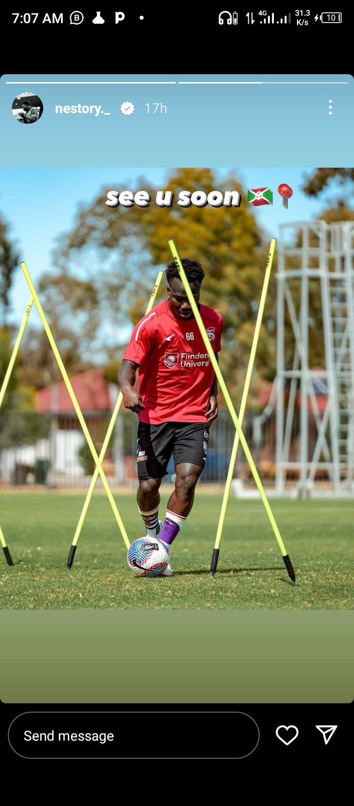 Irankunda revealed the developments in an Instagram story, captioning See You Soon with Burundi's flag.
