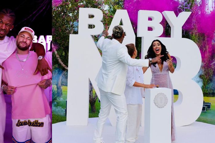 At the baby shower for his second child, Neymar wore a pair of socks in each hue to complete the ensemble.